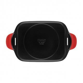 Anti-adherente libre de PFOA. Cuerpo de aluminio fundido. Asas fijas de silicona rojas. Base full induction.