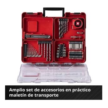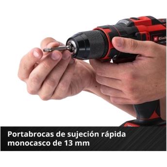 El taladro atornillador percutor con batería Einhell TE-CD 18/40 Li-i +64 (2x 2,0Ah) está equipado con una potente caja de cambios de dos velocidades y un par de 40 Nm que permite un gran rendimiento al taladrar y atornillar. Así, el taladro atornillador alcanza una frecuencia de percusión de 6.400 en la primera marcha y 24.000 en la segunda. Este taladro atornillador pertenece a la familia Power X-Change y ofrece las ventajas de las baterías de iones de Li combinables y eficientes.